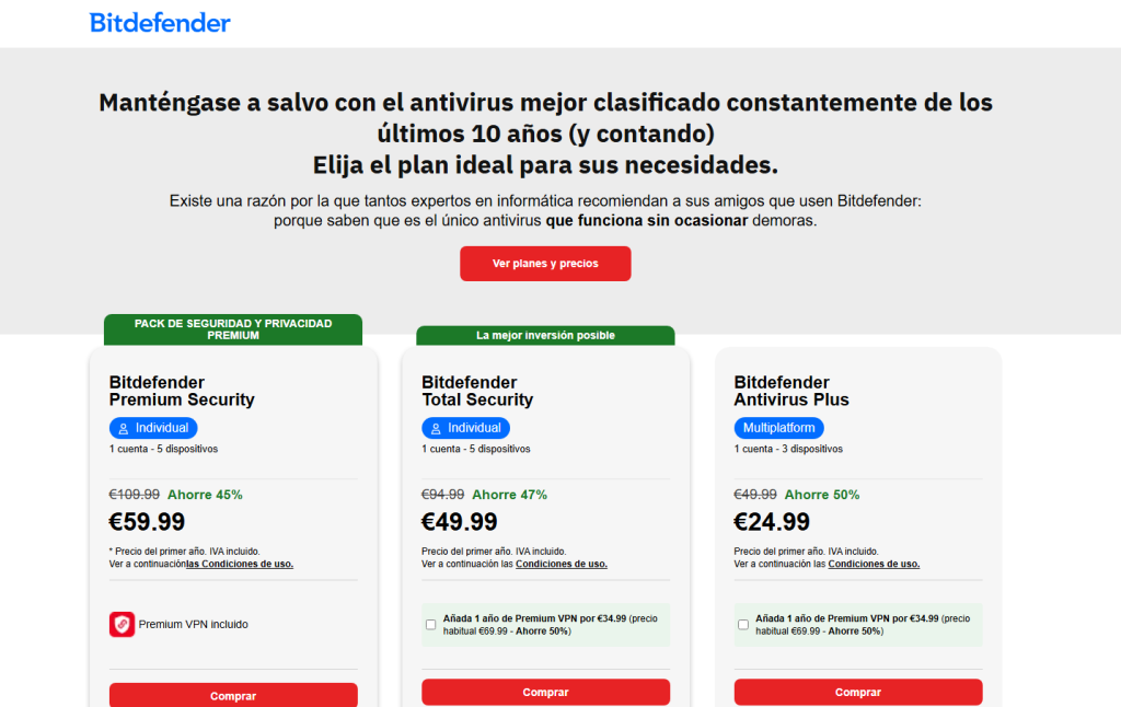 Bitdefender es uno de los antivirus más completos del mercado. Destaca por su alta tasa de detección de malware, protección en tiempo real y funciones avanzadas como VPN integrada y protección contra phishing. Además, su interfaz es bastante intuitiva, lo que facilita su uso incluso para personas sin conocimientos técnicos.