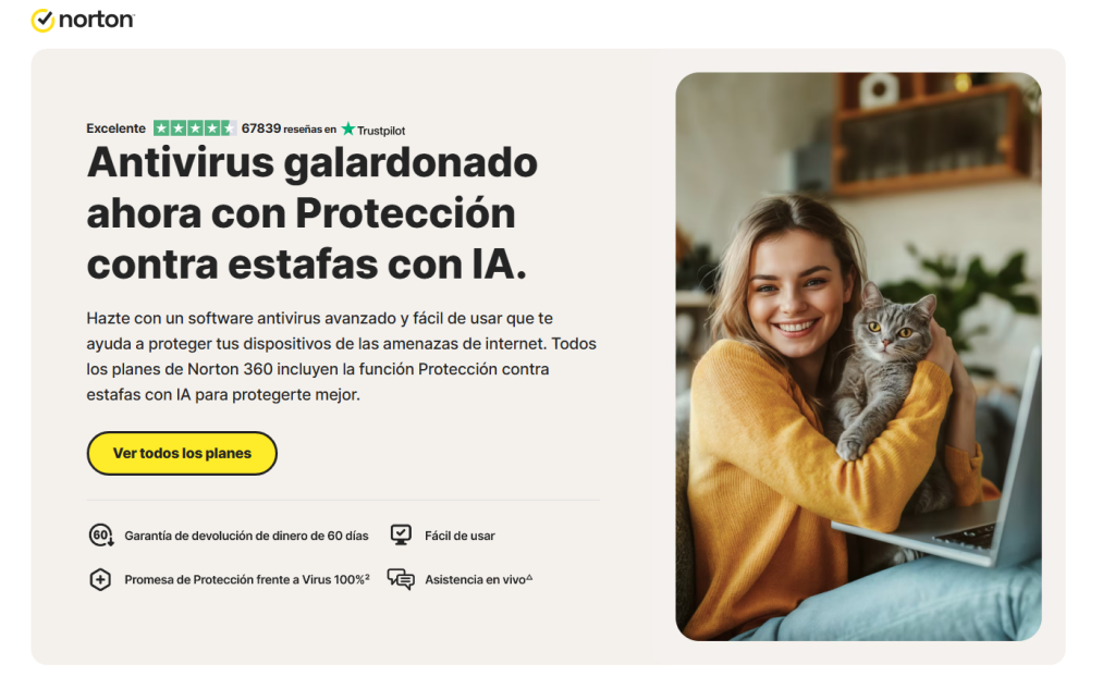Norton 360 es una solución todo en uno que va más allá del antivirus tradicional. Incluye herramientas como gestor de contraseñas, copia de seguridad en la nube y VPN, lo que lo convierte en una opción muy completa para quienes quieren centralizar su seguridad digital.